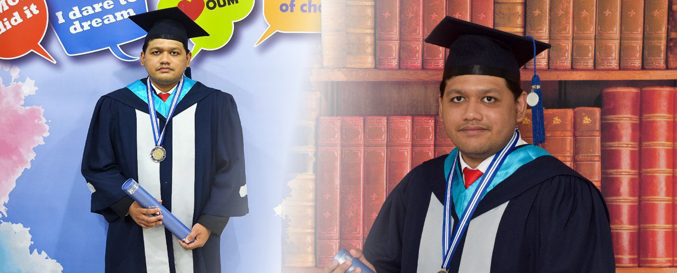 During my BBA studies, I was introduced to online learning, which is OUM’s primary learning method today. It greatly aided my studies. Classes are recorded, so I could re-watch my classes multiple times. This helped me to refresh my memory and revise before taking the final exams. It was so good that I made the dean’s list 7 times!