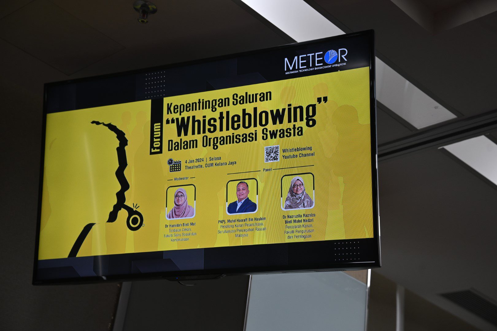 A forum at Menara OUM in Kelana Jaya on 4 June explored the importance of whistleblowing in the private sector. It featured two panellists: