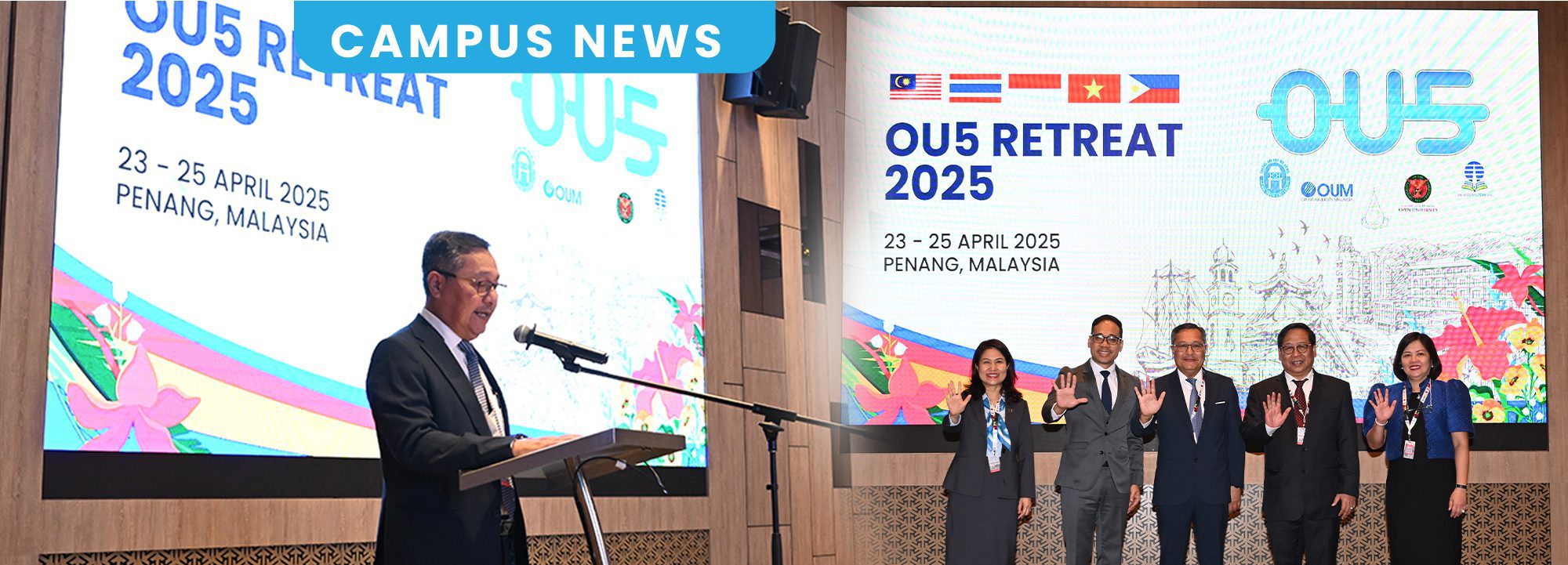 With the sea breeze of Penang setting a serene backdrop, we proudly hosted the OU5 Retreat 2025 at Angsana Teluk Bahang from 22 to 26 April. The event brought together leaders, researchers, and coordinators from five Asian open universities to discuss current initiatives and set the direction for future collaboration.