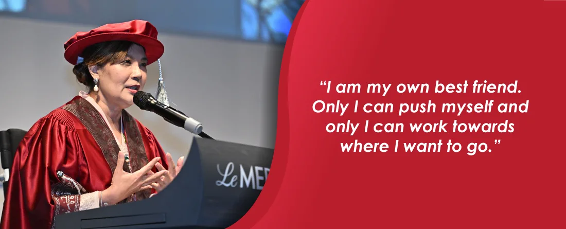 These were the heartfelt words of Senator Datuk Ras Adiba Mohd Radzi, after she was conferred the Honorary Degree of Doctor of Social Sciences and Humanities at a Special Convocation on 16 November.
